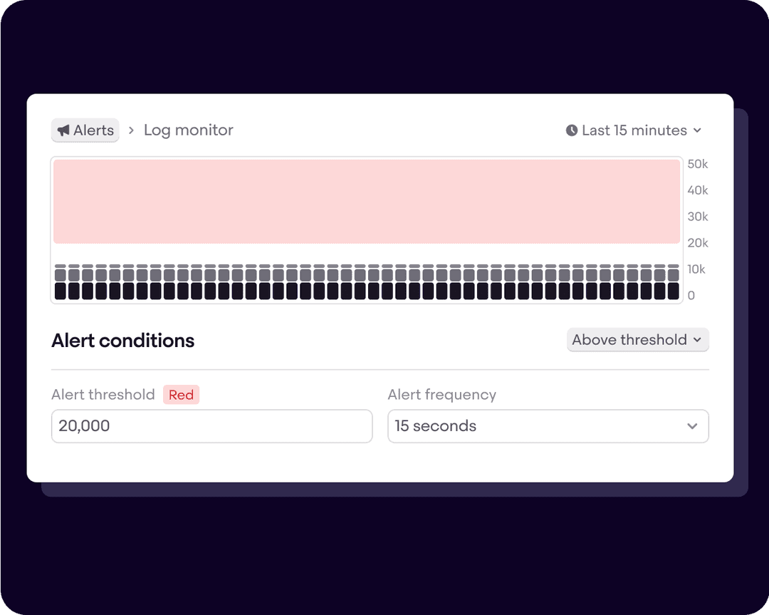 Create log alerts by setting log patterns and thresholds for real-time logs.