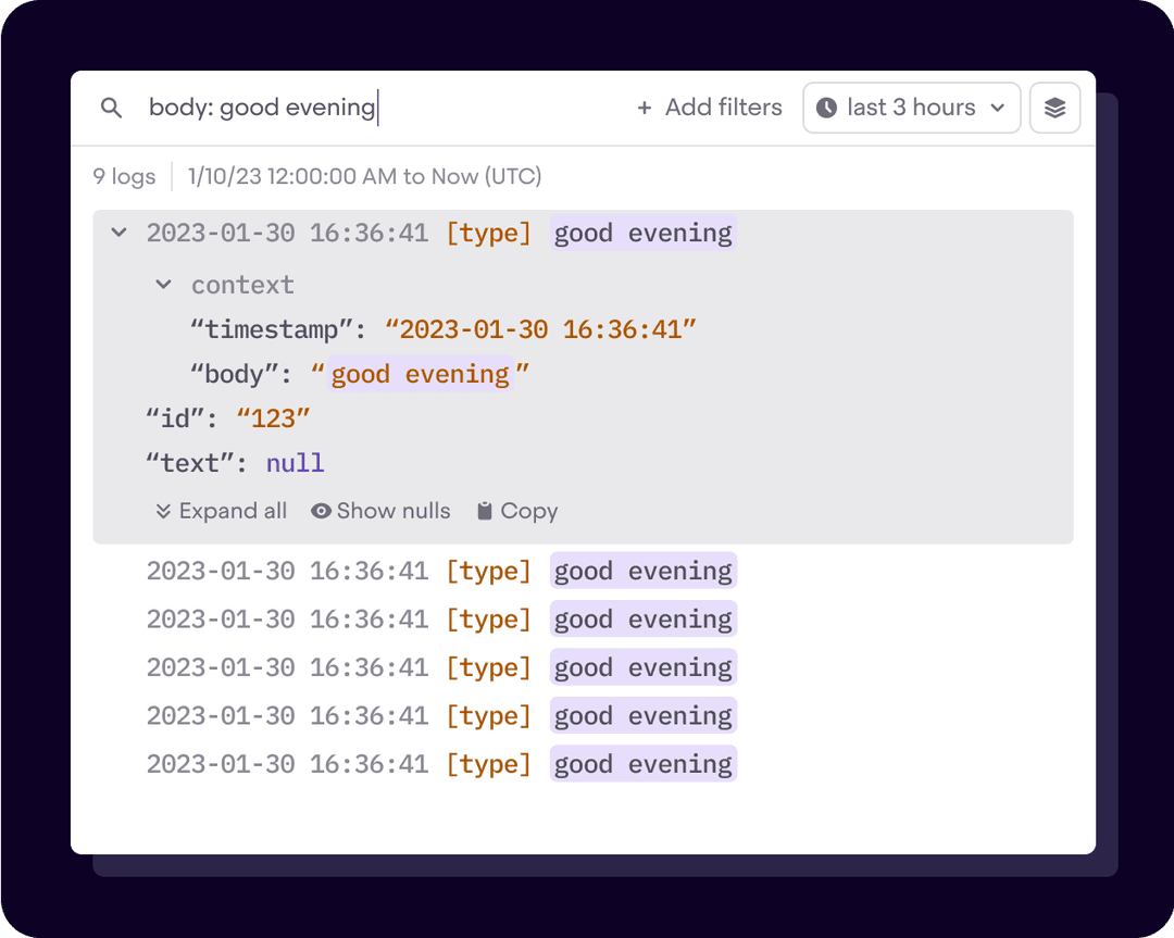 Perform fine-grained searches across all of your logs. Powered by ClickHouse, an industry leading time-series database.